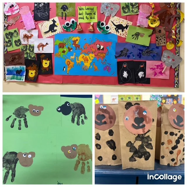 We put up a world map, and found where the animals lived, and then started to fill the rest of that display board with our artwork depicting each species.
