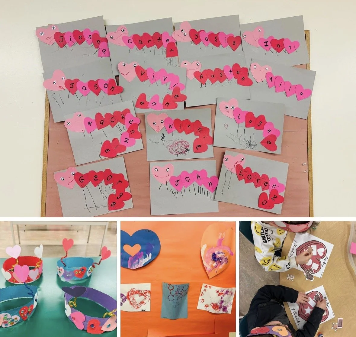 We had a wonderful time celebrating Valentine’s Day through art, teamwork, and tasty treats. The children created an adorable caterpillar craft featuring their names — a fun way to celebrate both friendship and letter recognition. They also made beautiful beaded heart ornaments, carefully threading beads to strengthen fine motor skills, hand–eye coordination, and concentration.