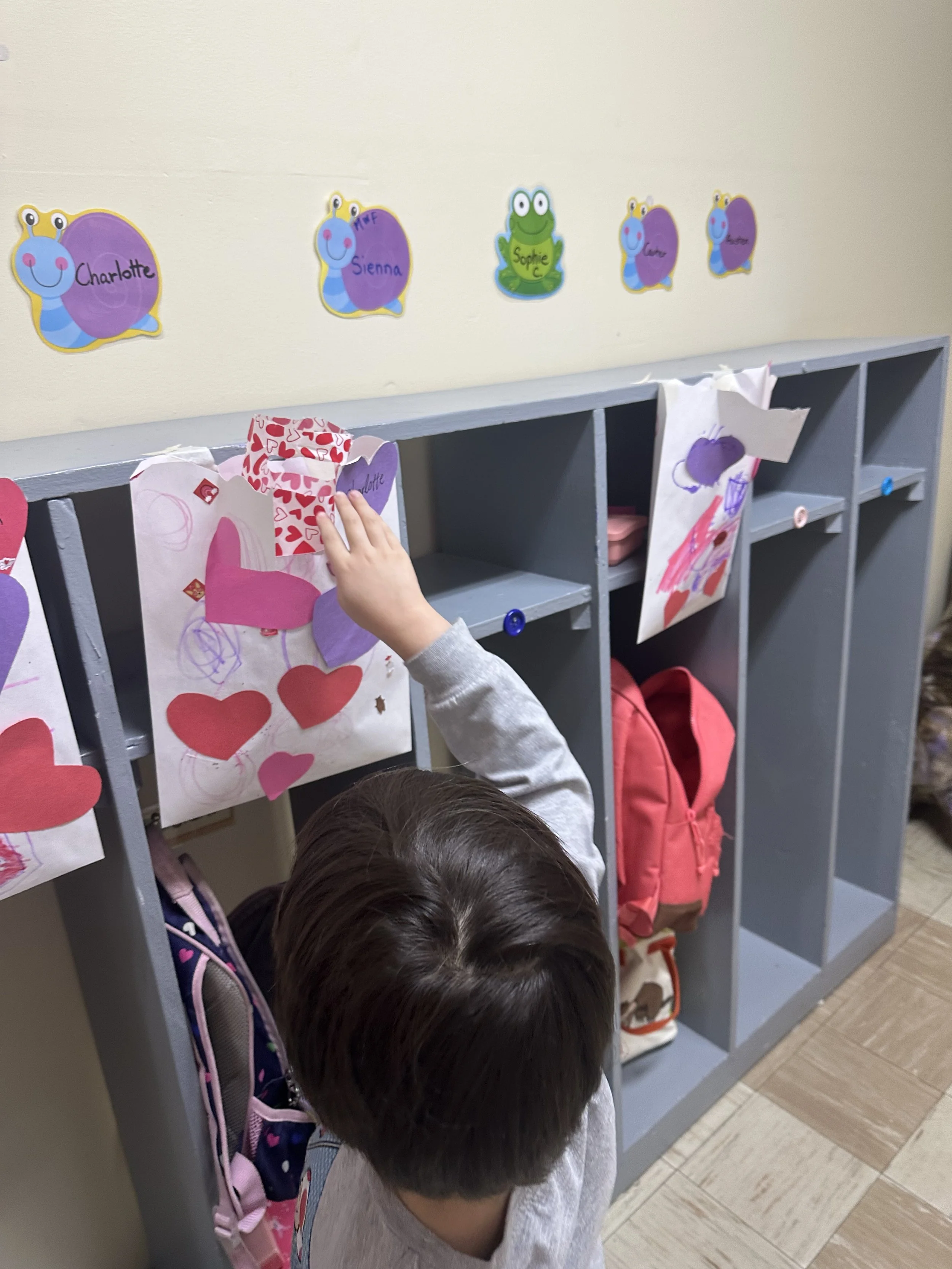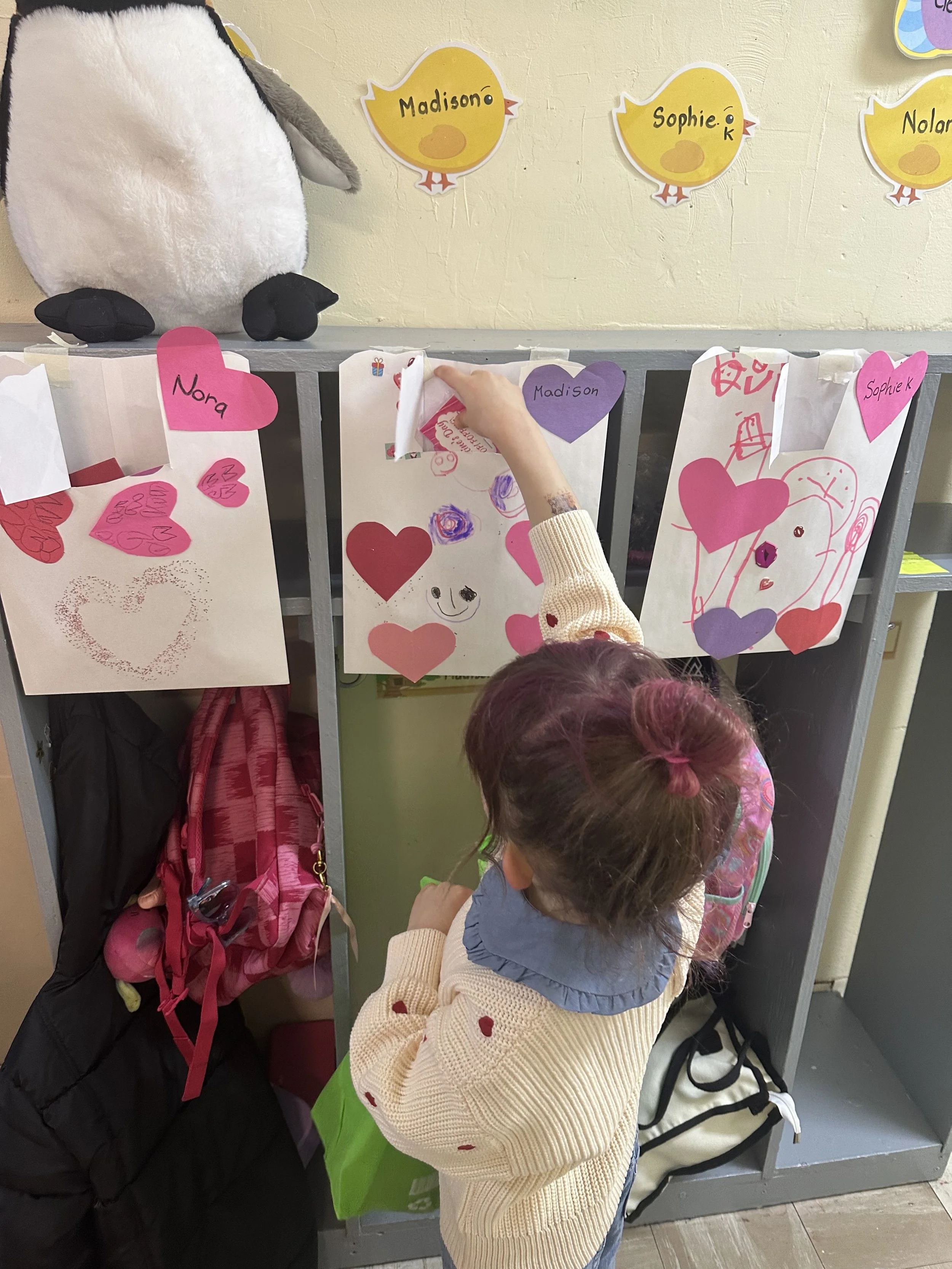 At the beginning of February, each child decorated their own Valentine envelope to collect Valentine cards and small gifts from their friends and teachers. This is a tradition we practice in the Treehouse Room to help prepare them for kindergarten, where they will continue this activity.