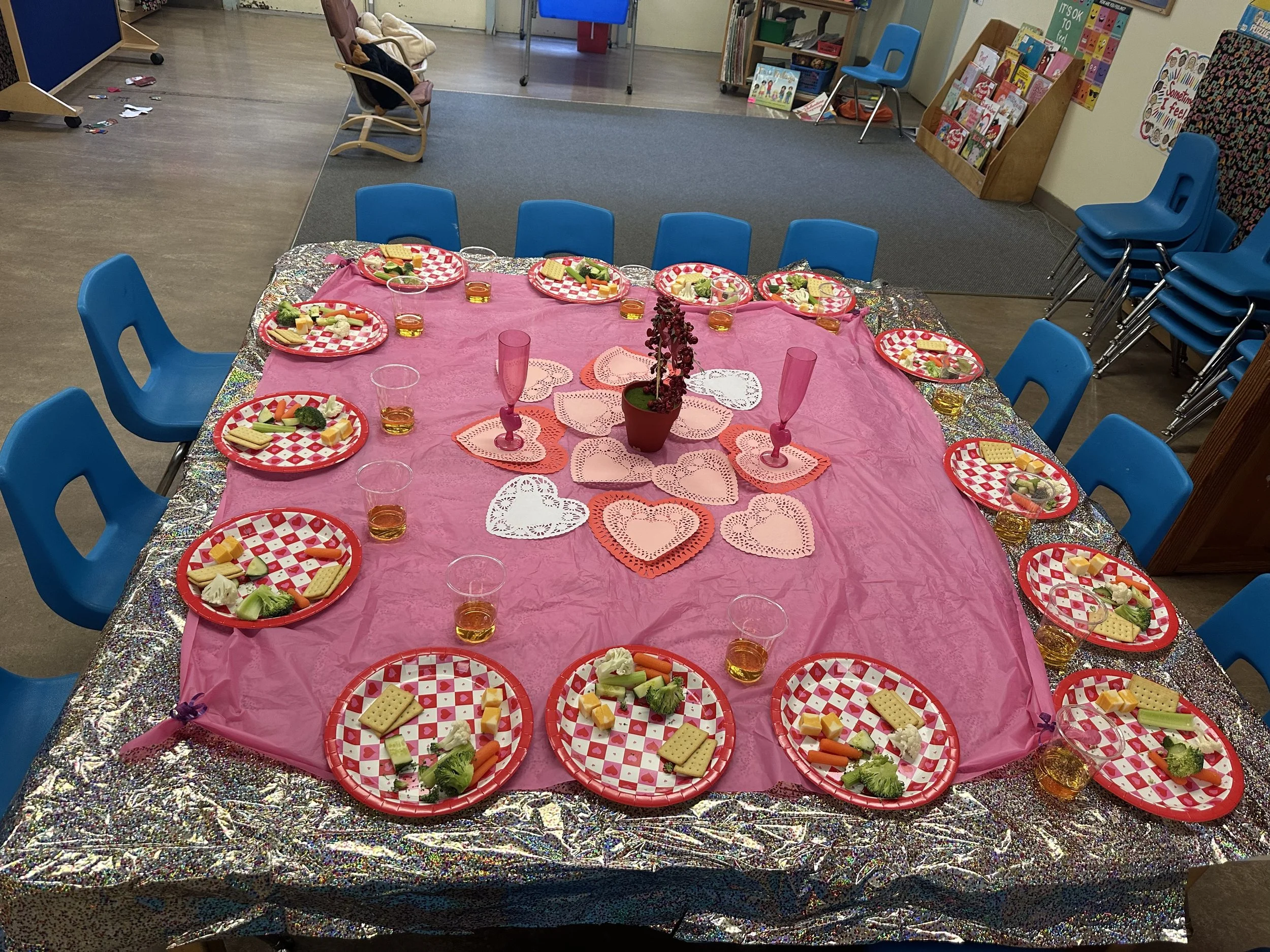 Our Valentine’s Party was a highlight! Each child brought in fruit to contribute to our Friendship Fruit Salad. The children worked together to cut the fruit into pieces, practicing cooperation and building fine motor strength as they learned safe cutting skills. It was a wonderful example of teamwork — and the end result was delicious!